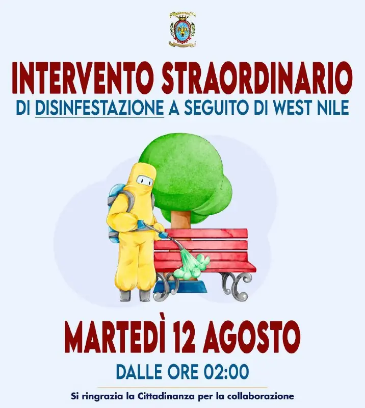 πππππ ππππ ππππ: ππ§πππ«π―ππ§ππ¨ πππ«ππ¨π«ππ’π§ππ«π’π¨ ππ’ ππ’π¬π’π§πππ¬πππ³π’π¨π§π β οΈ Visti i recenti casi di infezione da virus West Nile (derivanti da punture di zanzara infetta) che si stanno verificando anche nelle zone limitrofe, il Comune di Locri, a tutela della salute pubblica e contro la diffusione del virus, ha